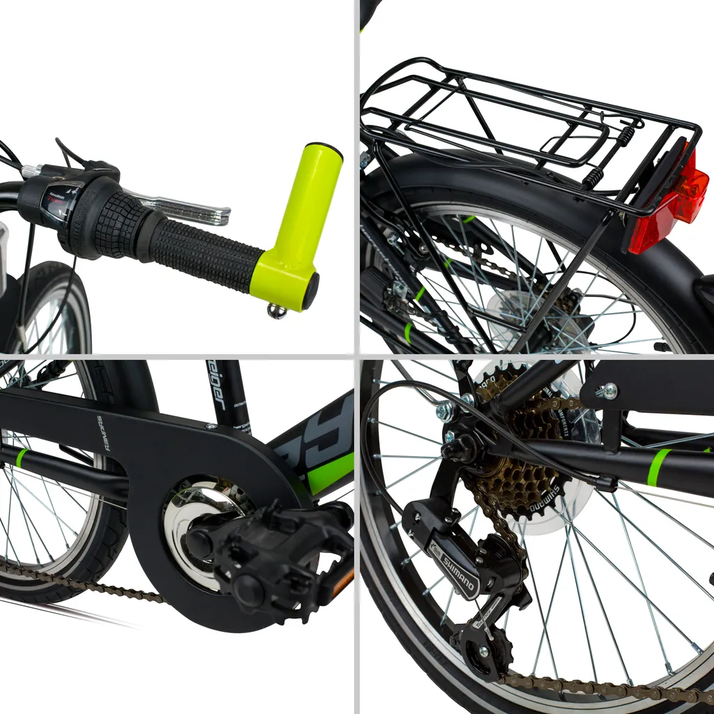 Mit einer Rahmenhöhe von 31 Zentimetern richtet sich Sydney an Kinder mit einer Körpergröße ab 1,15 Metern. Der innovative Hi-Ten Stahlrahmen ist extrem robust und nimmt auch stärkere Beanspruchungen kaum übel. Das Fahrrad verfügt über einen geschlossenen Kettenkasten, der zu einer höchstmöglichen Sicherheit beiträgt. Ein rasanter Hingucker ist zudem der topaktuelle MTB-Lenker mit den farbigen Bar-Ends. Er macht aus dem Kinderfahrrad einen trendstarken Blickfang und verhindert mit seiner auffallenden Optik Verwechslungen.