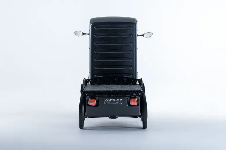 Vier Räder, Lenkrad, Sitz mit Rückenlehne, eine Pickup-Ladefläche und komplette Fahrerkabine – der Loadster ist kaum noch als E-Bike zu erkennen. Der Loadster kombiniert die Vorteile eines kleinen Stadtautos mit denen eines E-Bikes. Standfest, agil und voll elektrifiziert, ist der Loadster genau das richtige Fahrzeug für lokale Lieferdienste, Handwerker oder Vor-Ort-Service Anbieter