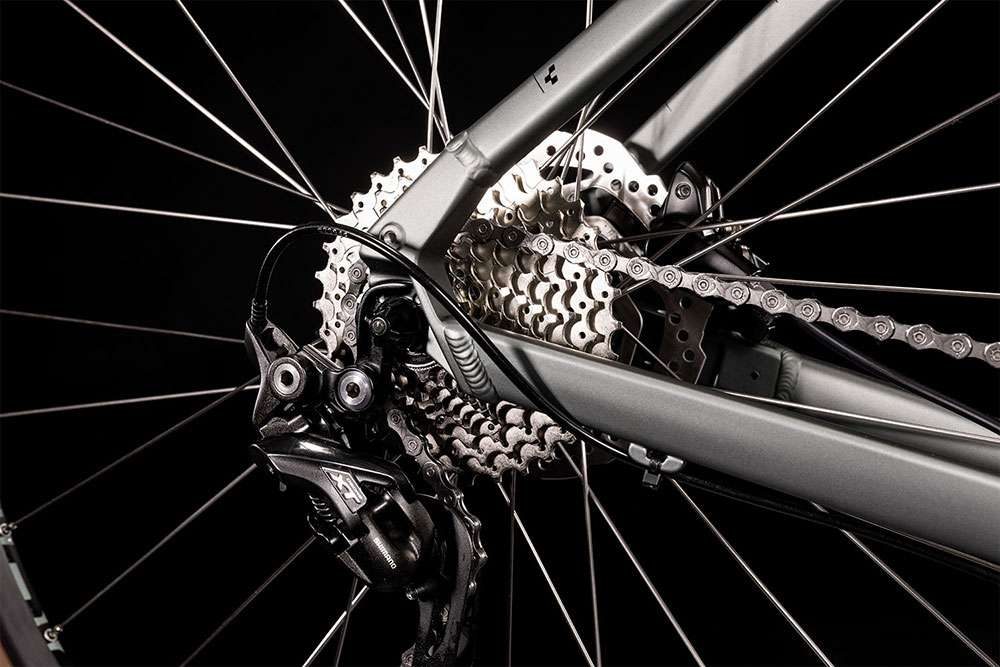 Wer mit seinem Bike gern abseits ausgetretener Pfade unterwegs ist, wird das Cube Nature Pro Lady lieben. Ein Grund dafür ist die große übersetzungsbandbreite der leichtgängigen Shimano 3×10-Schaltung mit superzuverlässigem XT Schaltwerk am Hinterrad – da hat man per einfachem Klick für jeden Anstieg den richtigen Gang parat.