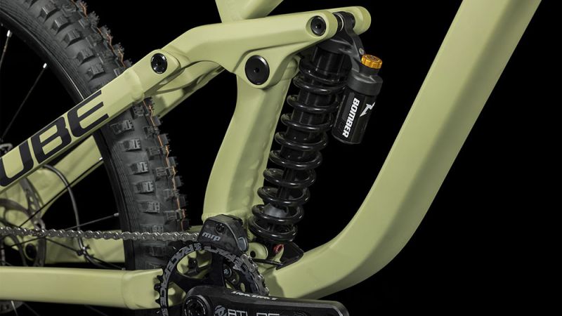 Elegant, dynamisch, progressiv – so der erste Eindruck vom Two15. Der zweite sagt: Dieser Rahmen ist ein waschechter Downhill-Profi! CUBE hat ihm mehr Reach, einen kürzeren Rocker mit optimierter Kinematik und einen flacheren Steuerrohrwinkel mit eingebauten Lagerschalen zur Winkelverstellung gegeben. Außerdem einen längeren Kettenstreben- und Unterrohrschutz. Sogar an einen Gabelanschlag wurde gedacht, über den die Züge sauber ins Innere des Rahmens geführt werden. Für den letzten Schliff sorgt ein superagiles Handling. Fazit: Mit diesem Chassis ist die Downhill-Krone zum Greifen nah!