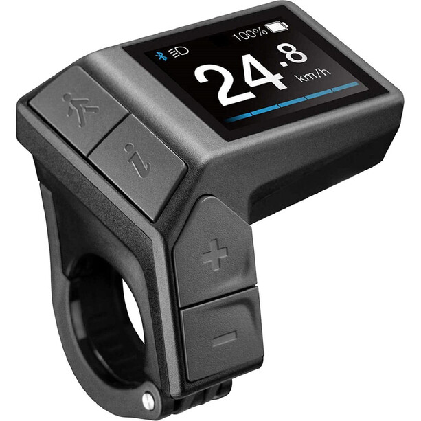 Das neue RideDash Evo Display zeigt alle wichtigen Werte des E-Bikes sowie der zurückgelegten Strecke an und stellt die unterschiedlichen Fahrmodi farblich dar.