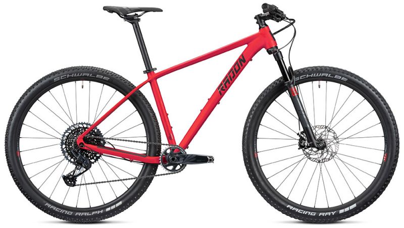 So federt an der Front die legendäre Cross Country Gabel Rock Shox SID SL mit ihren sportlich-straffen 100mm Federweg und lässt sich bei Bedarf für den Sprint bergauf bequem vom Lenker aus blockieren. Für episch – lange Touren ist eine komplette SRAM GX Eagle Gruppe mit der großen 10-52 Zähne umfassenden Kassette montiert, die auch für den steilsten Berg die richtige Übersetzung bereithält. Neigt sich der Trail gen Tal, hast Du mit der Magura MT Trail mit ihren vier Kolben vorne einen starken Bremsanker zur Hand, der bei technisch anspruchsvollem Gelände aber jederzeit dosiert eingesetzt werden kann. Ein leichter Sun Ringlé Düroc 30 Expert Komplettlaufradsatz erleichtert Zwischensprints und nimmt Schwalbe’s Cross-Country-Reifenklassiker Racing Ray und Racing Ralph mit seiner Maulweite von 26mm perfekt auf. Mehr Bikevergnügen geht nicht in diesem Preisbereich.