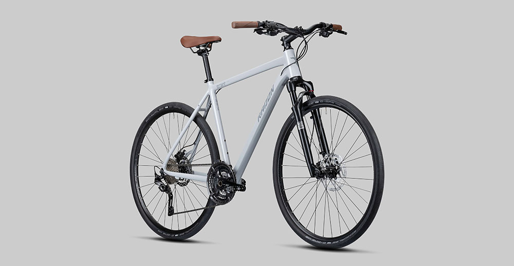 Unser Radon SCART LIGHT 9.0  geht unverändert in die neue Saison 2022 und das mit gutem Grund: allein optisch ist es mit seinem schicken, hellgrau glänzenden Rahmen und den stylischen, braunen Anbauteilen Sattel und Griffe ein klassischer Hingucker.