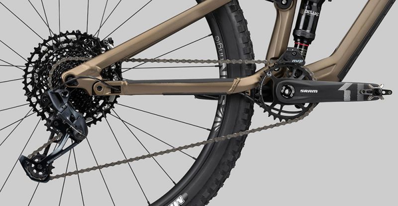 Damit das Heck auf gleich hohem Level performt, verbauen wir auch in dieser Saison den RockShox Deluxe Select+ mit der wirkungsvollen und intuitiv bedienbaren RT Dämpfung. Beim Antrieb setzen wir auf einen zuverlässigen Mix aus SRAM’s 1×12 GX & NX Eagle Komponenten, welche ein riesiges Übersetzungsverhältnis von 454 % bieten und somit in jeder Situation den perfekten Gang bieten. Wenn es auf der Abfahrt mal wieder brenzlig werden sollte, keine Angst – die bissige 4-Kolben-Bremse MT5 aus dem Hause Magura sorgt für massive Bremspower selbst auf steilsten Passagen. Das nächste Trail-Abenteuer kann kommen!