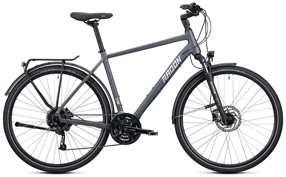 Die bewährte Suntour NEX Federgabel sorgt für Komfort, die hydraulischen Shimano MT200 Bremsen geben Sicherheit und die dreifach Kurbel mit dazugehöriger Shimano Kettenschaltung und insgesamt 27 Gängen hat auch auf anspruchsvollen Touren immer die richtige Übersetzung parat. Für Gepäck steht ein elegant freischwebender und gleichzeitig äußerst stabiler Gepäckträger zur Verfügung. Kombiniert mit den breiten und wirkungsvollen Schutzblechen wird das SOLUTION COMFORT absolut allwettertauglich. Und auch nach Sonnenuntergang findet man Dank der hellen Lichtanlage von Busch & Müller mühelos den richtigen Weg.