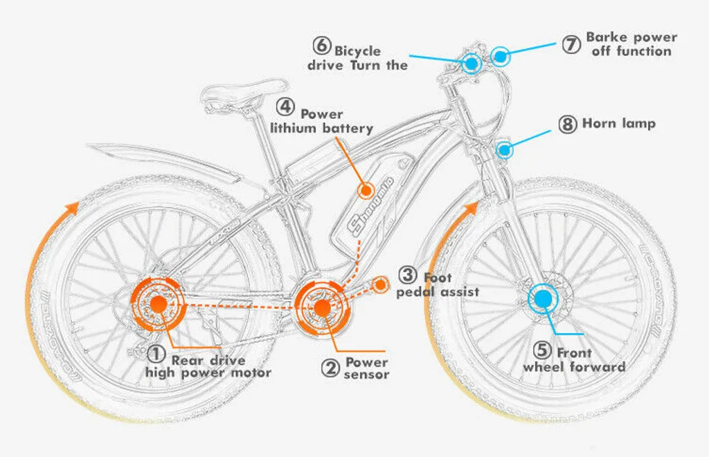 Ausgestattet mit einem Vorderradstoßdämpfer und einem Sportsitz lassen sich alle Arten von Fahrböden problemlos bewältigen. Die eingebaute mechanische Hydraulikbremse und der Bremshebel mit integrierter Bremsabschaltfunktion sorgen dafür, dass Sie bei Bedarf sicher bremsen können. Das einzigartige integrierte Akkudesign des Fahrrads verbindet Ästhetik mit hoher Reichweite.