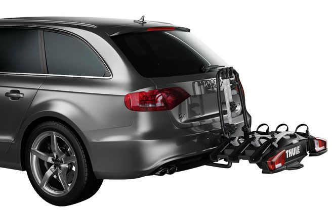 Der Thule VeloSpace XT kompakte und leichte VeloCompact Fahrradträger für 3 Räder von Thule für den Alltagsgebrauch. Die lassen sich durch abnehmbare Fahrradhaltearme mit abschließbaren Drehknöpfen bequem aufladen.